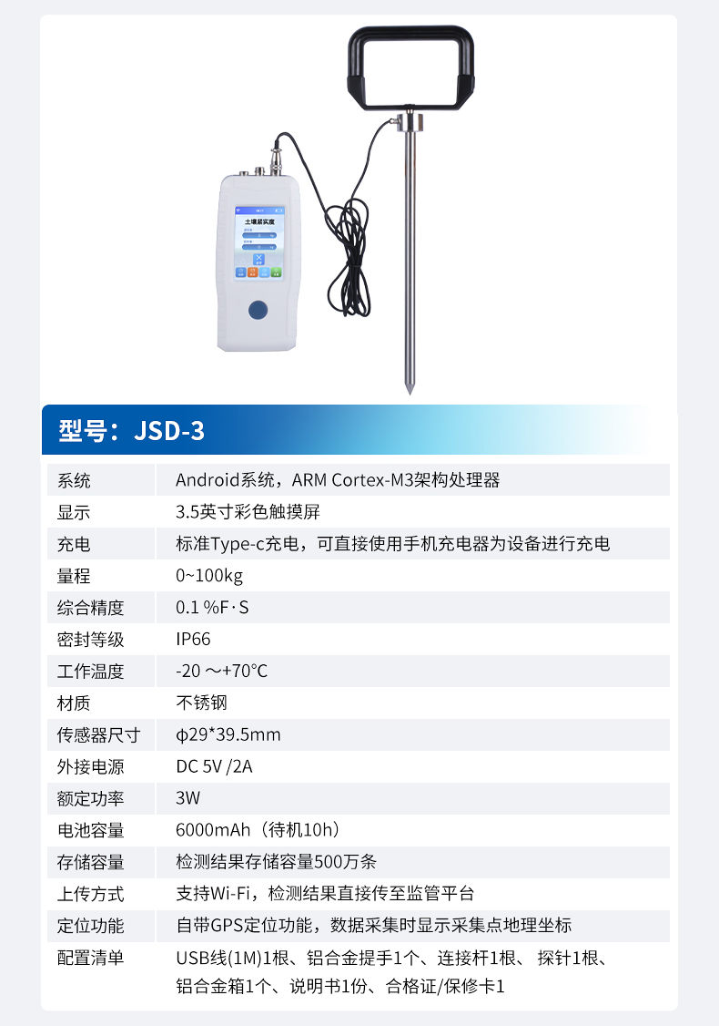 本設(shè)備是一種由手持式采集儀和緊實(shí)度傳感器所組成的一套土壤墑情監(jiān)測系統(tǒng)。同時具備操作簡便,攜帶方便,檢測迅速可靠等優(yōu)點(diǎn),在領(lǐng)域中可謂獨(dú)樹一幟。手持式采集儀可根據(jù)用戶需要出廠配置GPS、GPRS數(shù)據(jù)上傳等功能,設(shè)備中的數(shù)據(jù)也可以通過USB數(shù)據(jù)線連接電腦,并將歷史數(shù)據(jù)導(dǎo)出到電腦中進(jìn)行數(shù)據(jù)分析。