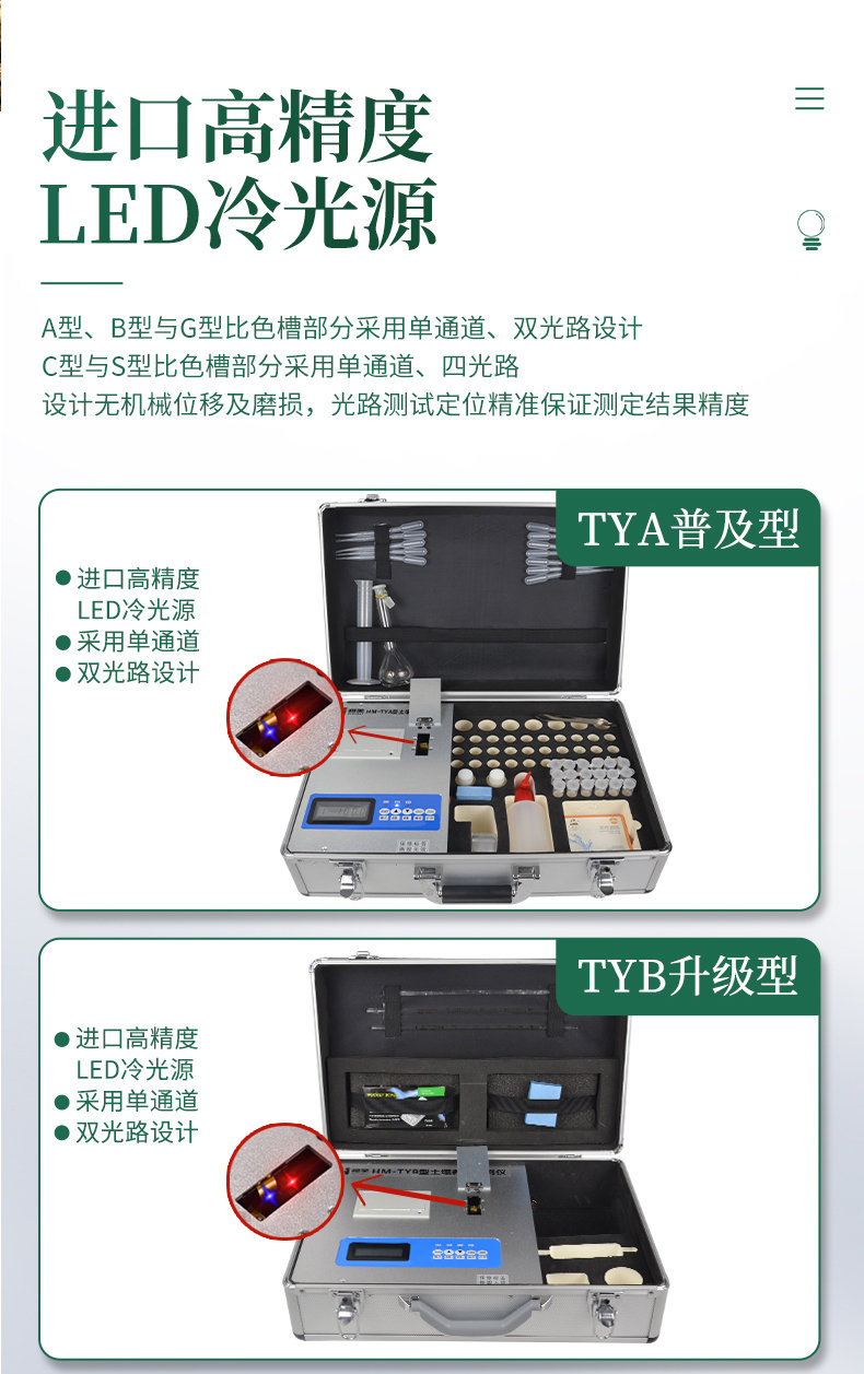 5、土壤養(yǎng)分速測儀采用高亮度 LED 燈作為光源, 硅半導(dǎo)體作為信號接收系統(tǒng), 壽命長達10萬小時級別。光源穩(wěn)定,一致性好。