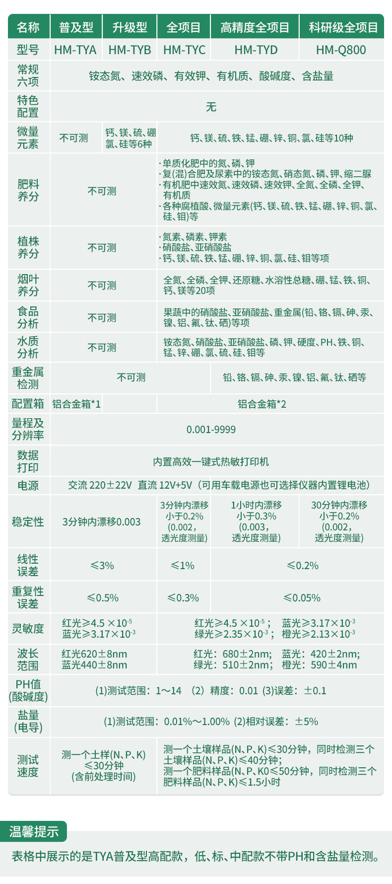 4、可檢測土壤及化肥、有機肥、植株中的速效氮、有效磷、速效鉀、全氮、全磷、全鉀、有機質(zhì)含量,土壤酸堿度,含鹽量(擴展)。