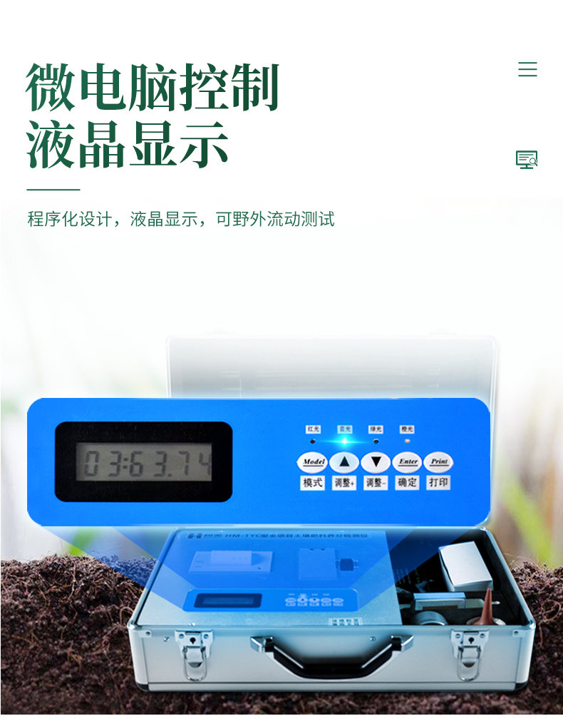 測一個土樣(N、P、K)≤30分鐘,同時檢測三個土樣(N、P、K)≤40分鐘。