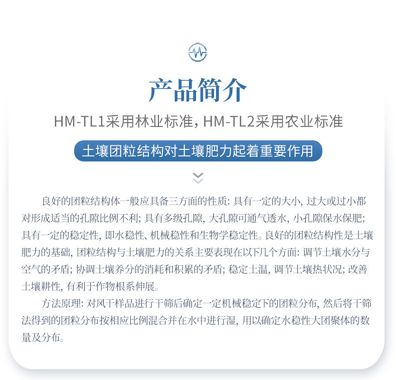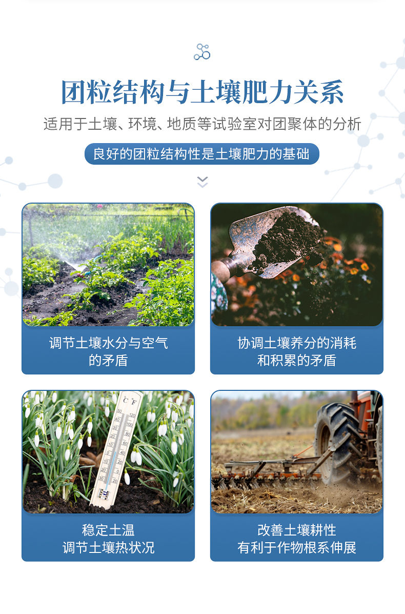 1、土壤團粒結構對土壤肥力起著重要作用。良好的團粒結構體一般應具備三方面的性質:具有一定的大小,過大或過小都對形成適當?shù)目紫侗壤焕?;具有多級孔隙,大孔隙可通氣透水,小孔隙保水保肥;具有一定的穩(wěn)定性,即水穩(wěn)性、機械穩(wěn)性和生物學穩(wěn)定性。良好的團粒結構性是土壤肥力的基礎,團粒結構與土壤肥力的關系主要表現(xiàn)在以下幾個方面:調節(jié)土壤水分與空氣的矛盾;協(xié)調土壤養(yǎng)分的消耗和積累的矛盾;穩(wěn)定土溫,調節(jié)土壤熱狀況;改善土壤耕性,有利于作物根系伸展。土壤團粒分析儀適用于土壤、環(huán)境、地質等試驗室對團聚體的分析。