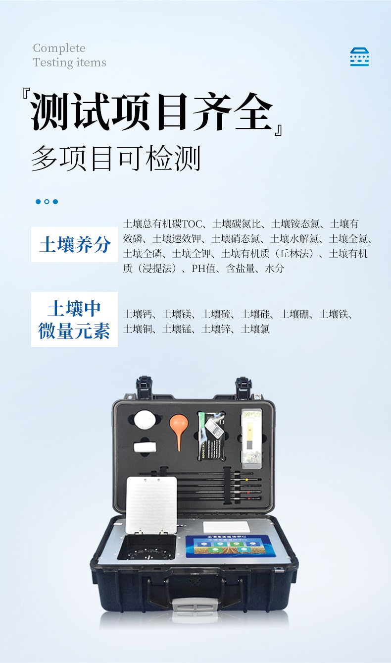 1、土壤養(yǎng)分:●土壤總有機碳TOC、土壤碳氮比、土壤銨態(tài)氮、土壤有效磷、土壤速效鉀、土壤硝態(tài)氮、土壤水解氮、土壤全氮、土壤全磷、土壤全鉀、土壤有機質(丘林法)、土壤有機質(浸提法)、PH值、含鹽量、水分。●土壤中微量元素:土壤鈣、土壤鎂、土壤硫、土壤硅、土壤硼、土壤鐵、土壤銅、土壤錳、土壤鋅、土壤氯。