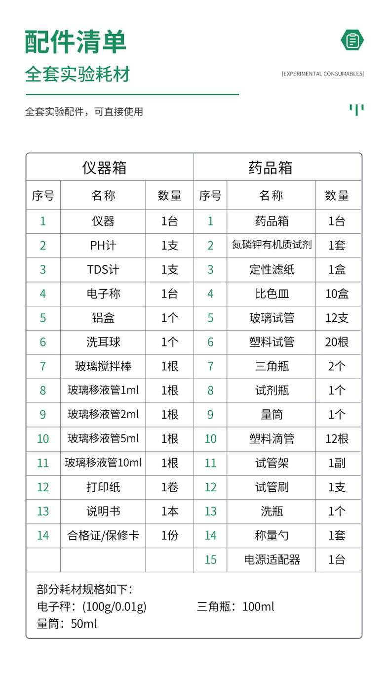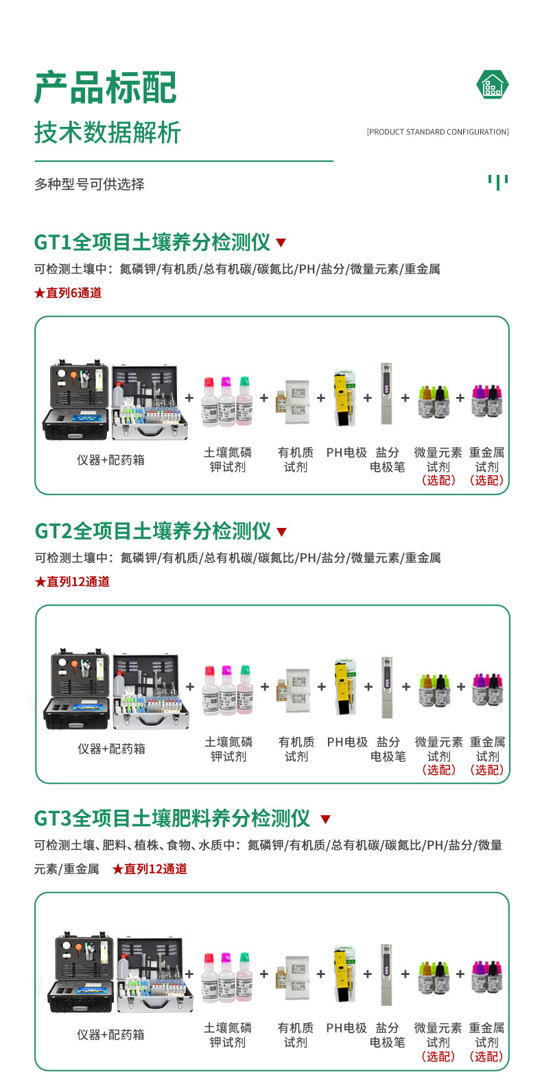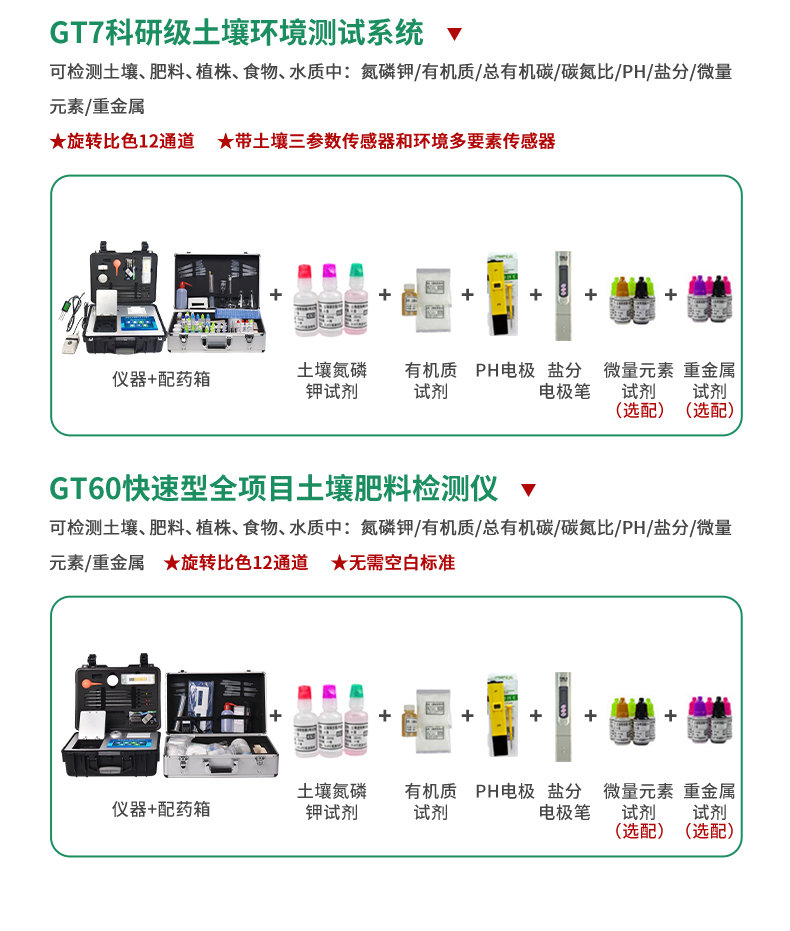 配套齊全:該儀器集藥、器、儀為一體,攜帶方便,相當(dāng)于一個小型移動實驗室,無需用戶自配附件,亦可靈活野外流動測試。適于農(nóng)業(yè)服務(wù)部門或農(nóng)資經(jīng)銷商、高教院校、科研院所、合作社、肥料廠商、大種植戶測土施肥和鑒別肥料真假及環(huán)保檢測應(yīng)用。